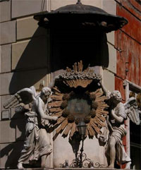 At the corner between Via del Lavatore and the fountain's square there is an 18th century icon of the Virgin Mary. Below there is a street lamp. Often the icons of Mary were placed above street lamps to deter thieves or wrongdoers to put off the light and commit crimes. |